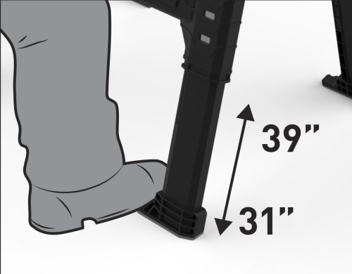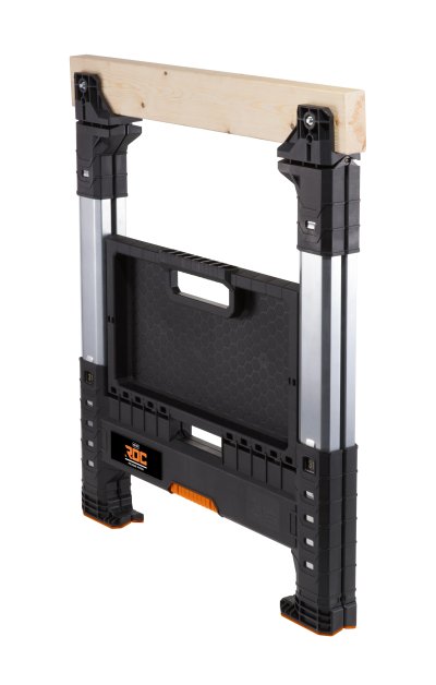 Inovatívne Lumberjack™ posúva koncept pracovných kôz do nových výšin. Bude vyhovovať profesionálom a domácim majstrom, ktorí potrebujú multifunkčný produkt, ktorý by splnil ich neustále sa meniace požiadavky. Unikátny račňový systém otvárania a zatvárania ponúka rýchle a jednoduché nastavenie výšky. Integrovaný drevený kus má štandardnú veľkosť 2'' x 4'' a je možné ho použiť mnohými spôsobmi na vytvorenie jedinečného a personalizovaného pracovného priestoru tak, aby vyhovoval rôznym projektom. Praktický podvozok má robustné kovové nohy, ktoré je možné individuálne nastaviť, čo umožňuje aj prácu na nerovnom povrchu a zvýšenie kozy z 31" na 39". Kompaktný Lumberjack™ s kapacitou 1360 kg na pár dokonale zvládne rôzne typy prác. Spodná tácka na náradie s nosnosťou 23 kg dodáva designu viac funkčnosti a väčšiu stabilitu.