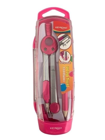 Kovové kružítko s držiakom tuhy a univerzálnym držiakom vhodným pre ceruzku. Kružítko je vybavené chránidlom ostrého hrotu zabraňujúce poraneniu alebo poškodeniu peračníka. Každé kružítko má na ramene plochu vhodnú na podpísanie. Balenie obsahuje kružítko, etui s 2 náhradnými tuhami, krátku grafitovú ceruzku a univerzálny držiak. Dodávané v ružovej farbe.