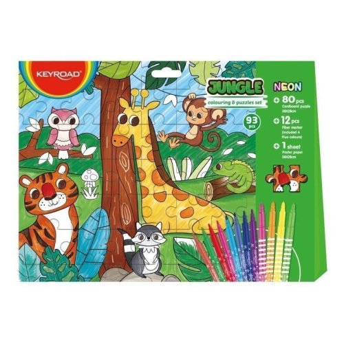 Zostavte si z 88 bielych kartónových dielikov o rozmere 38 x 28 cm svoje vlastné umelecké dielo divokej džungle a vymaľujte ako omaľovánky podľa vlastnej fantázie. Puzzle si môžete vymaľovať podľa vlastnej fantázie alebo môžete využiť predlohu, ktorá je súčasťou balenia. Súprava disponuje 12 popisovačmi, z ktorých 4 sú farby neónové. Ideálna zábava pre kreatívne detské duše.