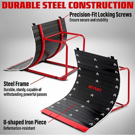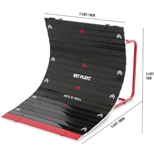 Futbalový trenažér Kick And Roll od NET PLAYZ je navrhnutý vo forme rampy, ktorá poskytuje autentický odskok a pomáha hráčom trénovať spracovanie lopty a prihrávky na jeden dotyk. S touto futbalovou rampou si môžete vytvoriť individuálny tréning na záhrade alebo môžete trénovať s celým tímom na ihrisku. Skladací zosilnený oceľový rám dodáva extra stabilitu a pevná rampa je odolná aj proti tvrdším strelám. Je to skvelá pomôcka pre futbalistov všetkých výkonnostných úrovní. Zlepšujte svoje futbalové zručnosti a posuňte sa na ďalšiu úroveň s futbalovým trenažérom Kick N Roll! - materiál: oceľ, plast - rozmery: 100 x 80 x 75 cm (dĺžka x šírka x výška) - hmotnosť: cca 9,5 kg - rozmery balenia: 87 x 43 x 10 cm - pre indoor aj outdoor použitie - pre individuálny aj tímový tréning