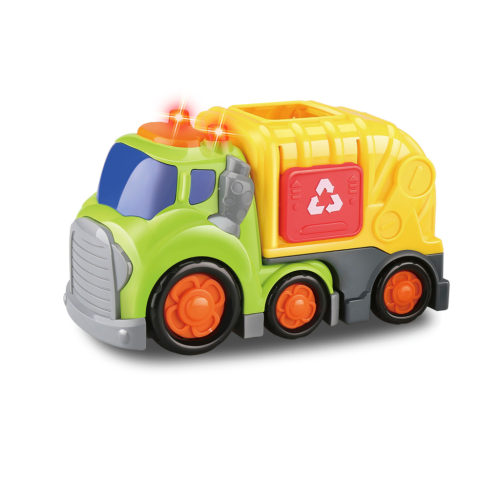 Kiddy Go! Smetiarske vozidlo s efektmi. Balenie obsahuje auto o veľkosti 19,5 cm, smetiaku a vrecia s odpadkami. Auto ponúka svetelné a zvukové efekty aj otvárací nákladný prosor pre väčšiu zábavu. Efekty sa aktivujú stlačením tlačidla na streche kabíny. Kolieska na voľnobeh. Auto vyžaduje 2xAA batérie, sú súčasťou. Vhodné pre deti od 18 mesiacov.