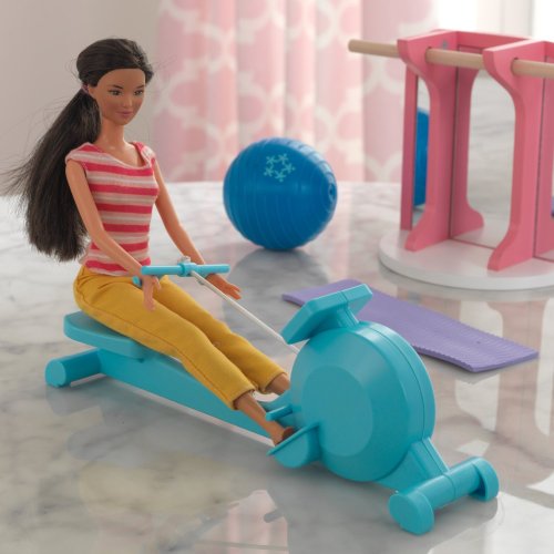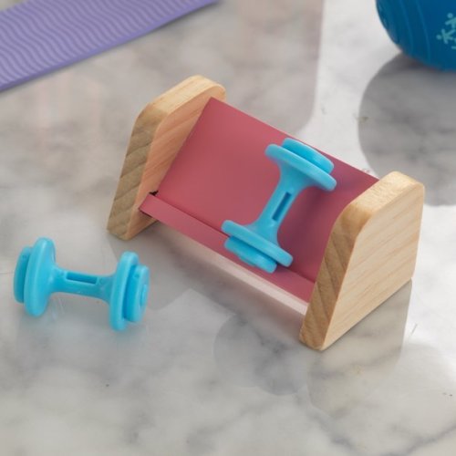Aj bábiky si musia udržať zdravý životný štýl a cvičiť! Doplnková sada pre bábiky - Domáca posilňovňa je ideálna na dekoráciu domčeka pre bábiky. Súprava obsahuje: - loptu na cvičenie - činky - podložku - stroj - cvičebný plán - zrkadlo s tyčou - stojan