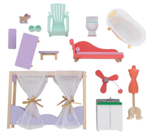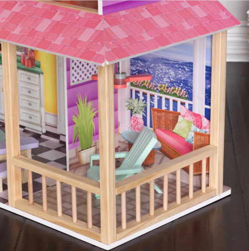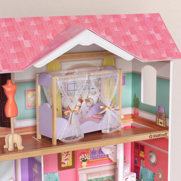 skladá sa z 3 poschodí a súčasťou je 13 dielikov doplnkov obsahuje 3 izby, terasu a balkón bábiky si môžu užívať výhľad z útulného balkóna, odpočívať na pohovke pri krbe alebo v posteli s nebesami, relaxovať na terase s vetraním a množstvo ďalších činností súčasťou je schodisko rozmery domčeka: 88 x 28 x 14 cm vhodné pre deti od 3 rokov
