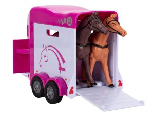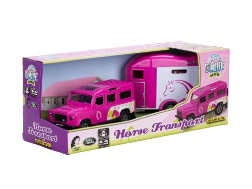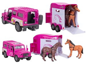 Kids Globe Horses Land Rover ružový kov s prívesom pre kone 28 cm spätný chod