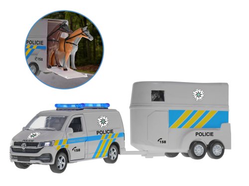 Kids Globe Traffic VW policajná dodávka CZ design 28 cm kov spätný chod s prívesom