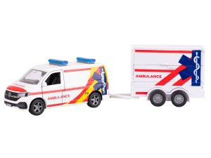 Kids Globe Traffic VW Transporter ambulancia 27,5 cm kov spätný chod s prívesom
