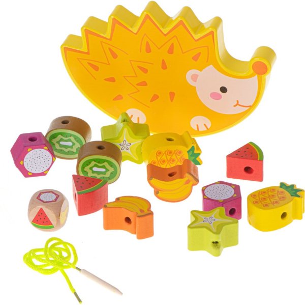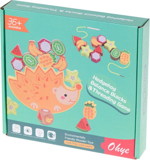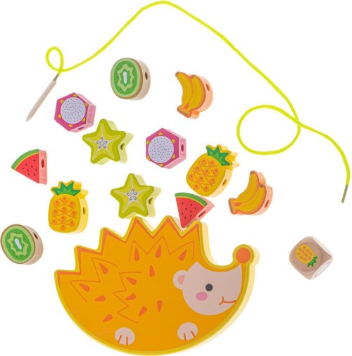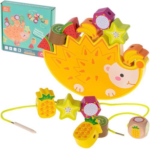 Balančná hra s motívom ježka a ovocia vyrobená z prírodného materiálu. Súčasťou balenia je aj povliekacia šnúrka. Akonáhle skončíte s balansovaním pustite sa do navliekania všetkých druhov ovocia.