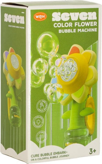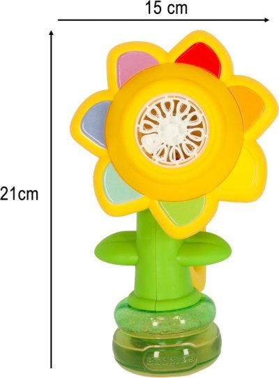 Zábavný prenosný stroj na výrobu bublín v tvare kvety! Nalejte bublifuk do prístroja, zapnite a užívajte si, koľko krásnych dúhových bublín kvetina dokáže vytvoriť. Rozmer bublifukovača: 12 x 15 x 21 cm. Napájanie: batéria 3,7 V 500 mAh (súčasťou balenia). Obsah sady: