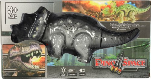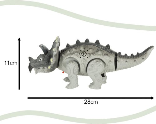 Rozmery: 27 cm x 11 cm x 10 cm Prevádzka na 3ks AAA 1,5 V batérie. Batérie nie sú súčasťou výrobku. Poznámka: Balenie obsahuje 1ks Triceratopsa.