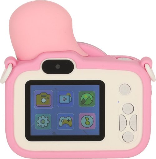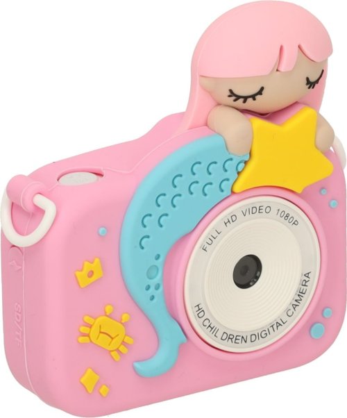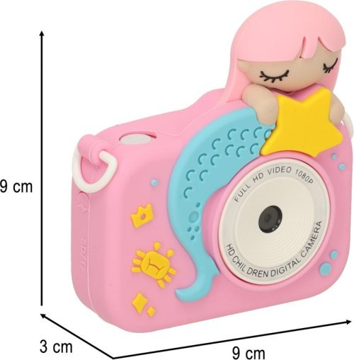 Sýýý r....cvak ! Ružový digitálny fotoaparát pre deti je skvelou voľbou pre malých nadšencov do fotografovania. Fotoaparát ponúka niekoľko funkcií: zhotovovanie fotografií, nahrávanie videí, hry, galériu a hudobný prehrávač. Intuitívne tlačidlá umožňujú ľahké prepínanie medzi režimami. Fotoaparát je vybavený 2'' farebným TFT displejom, ktorý umožňuje zhotovovať fotografie v rozlíšení až 3 Mpx a nahrávať videá v kvalite až 1440×1080. Širokouhlý objektív so 100° zorným poľom zachytí mnoho detailov. Zariadenie podporuje pamäťovú kartu SD (súčasťou balenia) s kapacitou až 32 GB, čo poskytuje dostatok úložného priestoru pre fotografie a videá. Nabíjanie prebieha cez USB kábel. Gumové puzdro v tvare morskej panny chráni zariadenie v prípade pádu. Fotoaparát podporuje rozvoj kreativity a tvorivého myslenia. Technické špecifikácie: