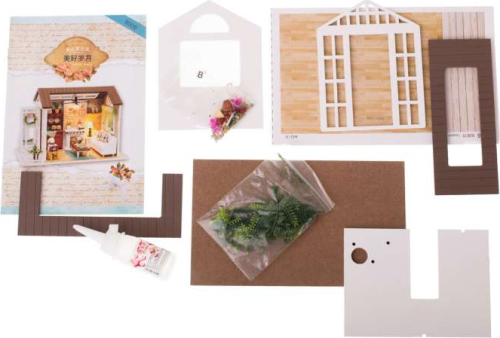 Autentický model domčeka, obývacej izby so všetkými potrebnými detailmi. DIY model elegantného domčeka, obývacej izby je vyrobený s použitím materiálov najvyššej kvality s dôrazom na každý detail. Je ideálny pre staršie deti a dospelých, poskytuje zábavu na hodiny. Hotovú obývaciu izbu je možné využiť ako dekoráciu v detskej izbe. Lepenie a zdobenie izby je skvelým spôsobom, ako učiť deti trpezlivosti a zmyslu pre estetiku. V obývacej izbe sú umiestnené 2 LED svetlá napájané batériami 2x AAA 1,5 V a 3x 1,5 V LR54 (batérie nie sú súčasťou balenia). Všetok nábytok a doplnky zobrazené na obrázku je potrebné urobiť svojpomocne (vrátane rezania, zostavovania a lepenia). Výhody: poskytuje zábavu na hodiny, 100% odraz skutočnej izby, dôraz na trpezlivosť a zmysel pre estetiku dieťaťa, skvelý spôsob relaxácie a aktívneho odpočinku. Súprava obsahuje:
