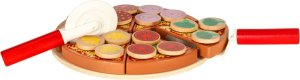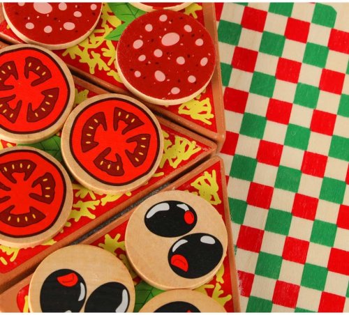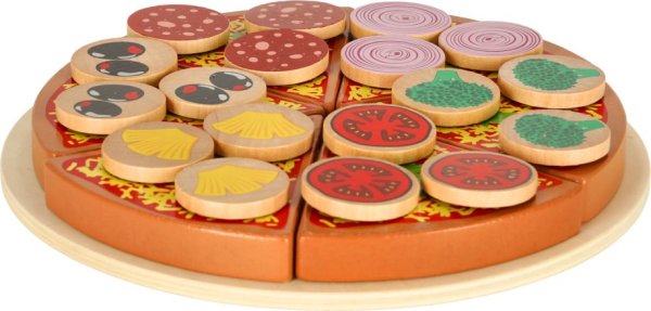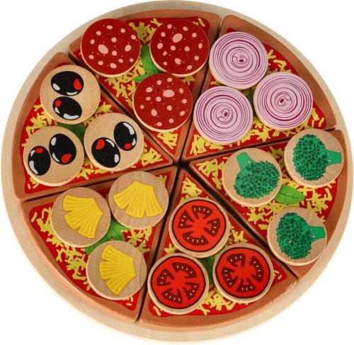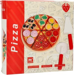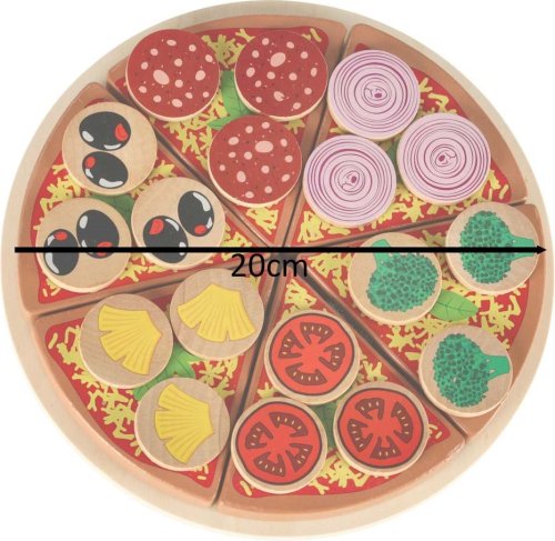 Súprava na zdobenie vlastnej pizze. Hračka je vyrobená výhradne z dreva. Jednotlivé dieliky pizze je možné spájať pomocou priloženého suchého zipsu. Skvelá hračka, ktorá určite poteší malého kuchára. Vďaka spojeniu dielikov na suchý zips je možné pizzu krájať priloženým nožíkom. Hra pozitívne ovplyvňuje rozvoj manuálnych zručností dieťaťa. Podporuje kreatívne myslenie a tvorivosť. Vaše dieťa si bude môcť pizzu ozdobiť podľa vlastnej chuti.