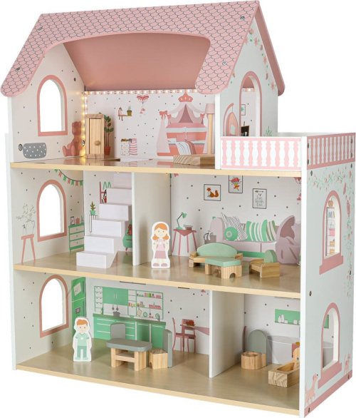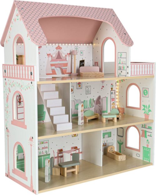 Kúzelný pastelovo ružový domček pre bábiky LULILO Peonio pozýva deti do sveta fantázie a nekonečnej zábavy. Vďaka LED osvetleniu, detailnému nábytku a dvom figúrkam ponúka priestor na kreatívne hranie a rozvoj detskej predstavivosti. Vlastnosti: