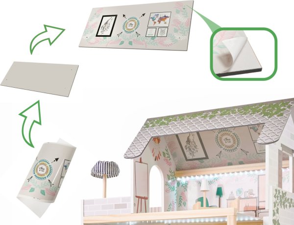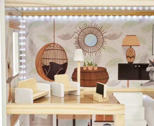 Vitajte v rozprávkovom svietiacom domčeku s tromi poschodiami, kde nájdu oddych všetky bábiky, plyšové hračky a figúrky vašich detí. Hra s domčekom podnecuje fantáziu a podporuje správny rozvoj manuálnych zručností. Hraním rôznych rolí navyše dieťa získa cenné sociálne zručnosti. Domček je navrhnutý v Boho štýle, ktorý sa vyznačuje najmä kombinovaním rôznych textúr, prírodných materiálov a zemských farieb. Záleží predovšetkým na pohodlie a kreativite.