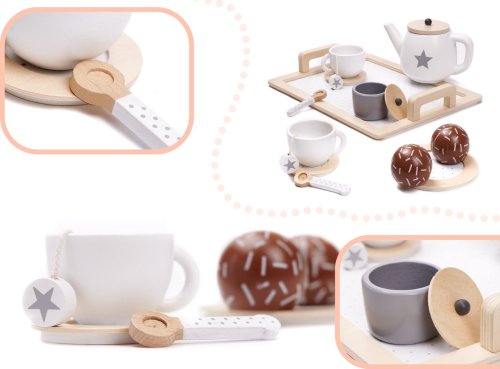 Detský set ná kávu alebo čaj určite poteší každé malé dievčatko. Servis je vyrobený z dreva a nadchne všetky malé gazdinky. Nechajte si naservírovať čaj alebo kávu, štýlovo, v hrnčeku s tanierikom az kanvičky.