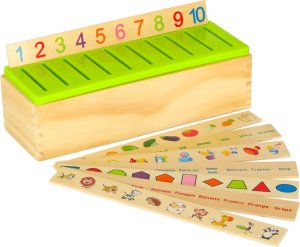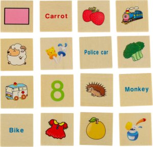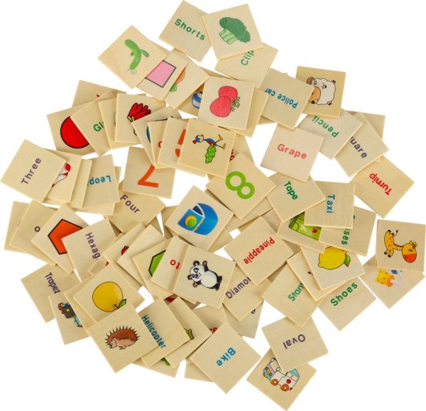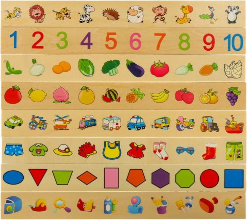 Hra spočíva v tom, že dieťa vhadzuje malé doštičky s obrázkami do otvorov zodpovedajúcich veľkým doskám, na ktorých sú rovnaké obrázky. Každý otvor predstavuje iný motív – číslo, tvar, zviera alebo predmet. Hra rozvíja logické myslenie, rozpoznávanie tvarov, jemnú motoriku, koordináciu ruka-oko, pamäť, sústredenie, základné znalosti o číslach, tvaroch, zvieratách a predmetoch a základy anglického jazyka (všetky doštičky sú popísané anglickými názvami). Vďaka drevenému prevedeniu a hladko obrúseným hranám je úplne bezpečná - nehrozia triesky ani poranenia. Balenie obsahuje: drevenú krabičku s vekom, 8 veľkých doštičiek (každá s 10 obrázkami) a 80 malých doštičiek s jednotlivými obrázkami.