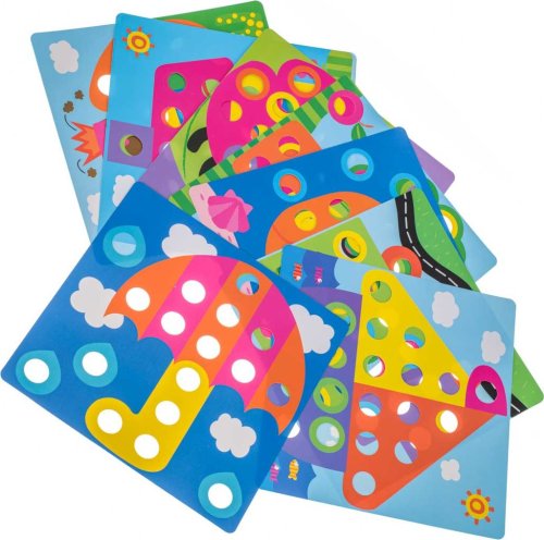 Táto vzdelávacia farebná mozaika je ideálnou pomôckou pri učení názvov farieb a počítania. Cieľom je umiestniť farebné klobúčiky do otvorov na obrázkovom podklade.