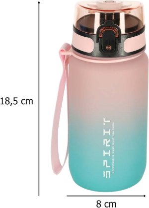 Viečko s prackou "cvak" - obsah fľaše je tak chránený pred náhodným rozliatím Odmerka s infografikou - fľaša zobrazuje hodnoty hladiny vody ilustrované kresbami Motivačná odmerka - denný rituál pitie vody Objem 600ml Umývanie v umývačke sa vzhľadom na vysoké teploty niektorých programov neodporúča