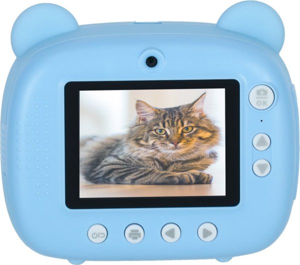 Sýýý r....cvak ! Modrý fotoaparát pre deti je kreatívna hračka, ktorá podporuje umelecké sebavyjadrenie. Zariadenie umožňuje deťom robiť fotografie, nahrávať videá, prehrávať hudbu a hrať hry. Fotoaparát tlačí čiernobiele fotografie, ktoré si deti môžu vyfarbiť pomocou šiestich priložených fixiek, čím rozvíjajú svoju kreativitu. Technické špecifikácie: