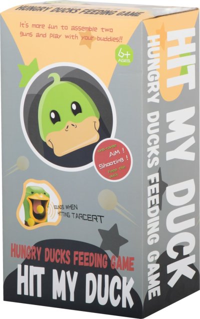 Môžete hrať vo dvojiciach a nastaviť pravidlá, podľa ktorých vyhráva tím, ktorý v najkratšom možnom čase dosiahne viac zásahov. Ďalšou možnosťou je, že vyhrá dvojica, ktorá získa lepší výsledok pri použití najmenšieho počtu guličiek - výhier. Rozmery: kačica: 17,5 x 32 cm pištoľ: 40 x 16 cm Obsah balenia: pištoľ, kačica, 10 penových nábojov. Prevádzka na 2 ks batérie typu AA 1,5 V (nie sú súčasťou balenia).