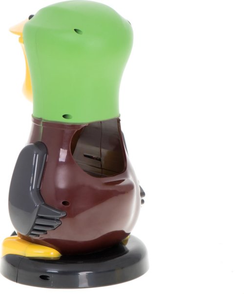 Zbraň je poháňaná vzduchom. Náboje sú penové, takže sú ľahké, mäkké a predovšetkým bezpečné. Keď náboj zasiahne jazyk kačice, hračka vydá charakteristický zvuk. LCD obrazovka automaticky počíta všetky zásahy. Dostrel až 10m.