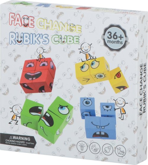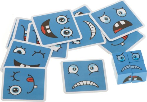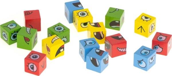 Pravidlá hry: náhodne vyberte jednu z kariet a vytvorte vyobrazenú tvár čo najrýchlejšie pomocou kociek. Farba kociek musí zodpovedať farbe karty. Zdá sa vám úloha jednoduchá? Pozor, nenechajte sa zmiasť zdaním. Vyhráva ten, kto zostaví 10 tvárí čo najrýchlejšie. Sada obsahuje: 16 kociek v štyroch farbách, 64 kariet s rôznymi tvárami.