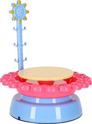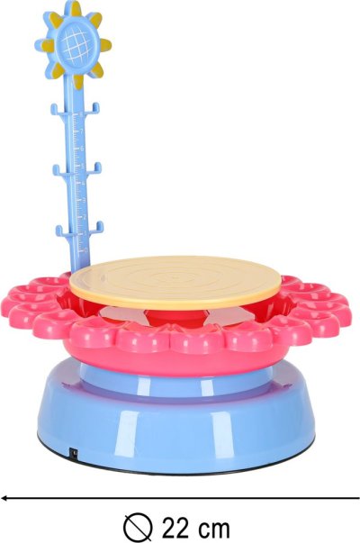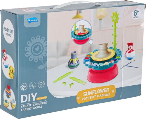 Kruh ponúka dve rýchlosti otáčania, takže je vhodný ako pre začiatočníkov, tak aj pre deti, ktoré si už hrnčiarstvo vyskúšali. Vďaka zástere a bohatému príslušenstvu môžu deti tvoriť bez obáv o svoje oblečenie. Sada obsahuje všetko potrebné na výrobu a zdobenie hrnčekov, misiek, kvetináčov či vázičiek – vrátane farieb, štetcov a modelovacích nástrojov. Kruh je možné napájať USB káblom alebo 4 batériami LR20, takže zábava môže pokračovať aj vonku. Balenie obsahuje: hrnčiarsky kruh, 3 vrecká s hlinou (celkom 600 g), 12 farieb, 2 štetce, 2 modelovacie valčeky, meter, USB kábel a zástera.
