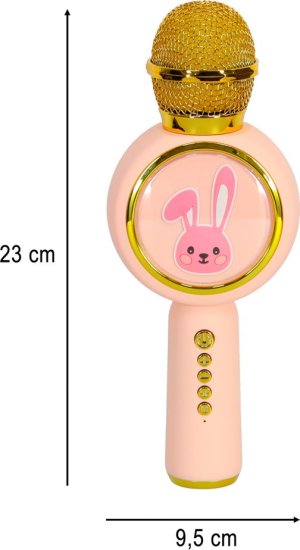 bezdrôtový bluetooth mikrofón svetelné efekty napájania pomocou USB kábla (súčasť balenia) podporovaný formát: MP3 rozmery mikrofónu cca 24 x 9 cm