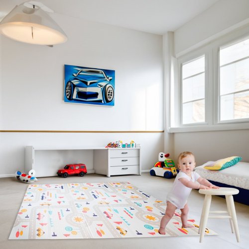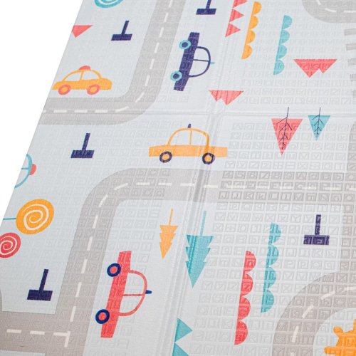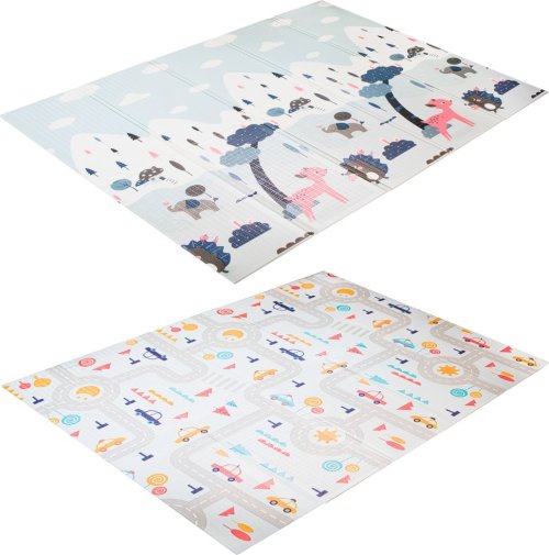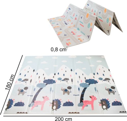 Farebná obojstranná potlač - Cesty s autami + Les so zvieratkami grafika môže inšpirovať rodičov k rozprávaniu príbehov, hra na položke s cestami môže byť úvodom k poznávaniu dopravných predpisov, textúrovaný povrch s protišmykovou úpravou, z pevnej a pružnej peny XPE - dostatočne tvrdá pre správnu oporu dieťaťa, keď sa snaží zdvihnúť a dostatočne mäkká, aby tlmila prípadné pády, účinne izoluje od studených podláh, činne nahradí koberec, vhodná na plazenie, odolná proti poškodeniu a oderu, vodeodolná, veľmi priestranná 198 x 177 x 0,8 cm, ľahko sa čistí vlhkou handričkou, vhodná na použitie doma aj vonku alebo na výlety, skvelý spôsob ako vymedziť hraciu zónu v izbe, ľahké zloženie do kompaktných rozmerov.