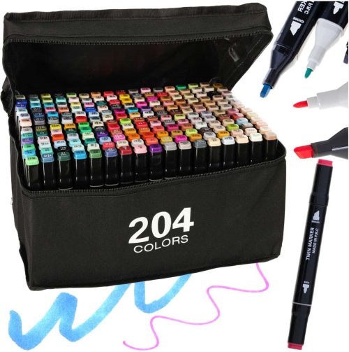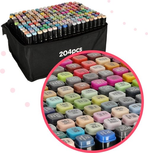 Súprava 204 fixiek v rôznych farbách a plastový stojan pre jednoduché uloženie. Vlastnosti: