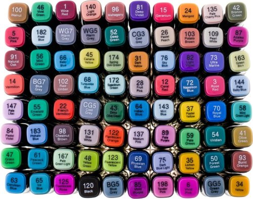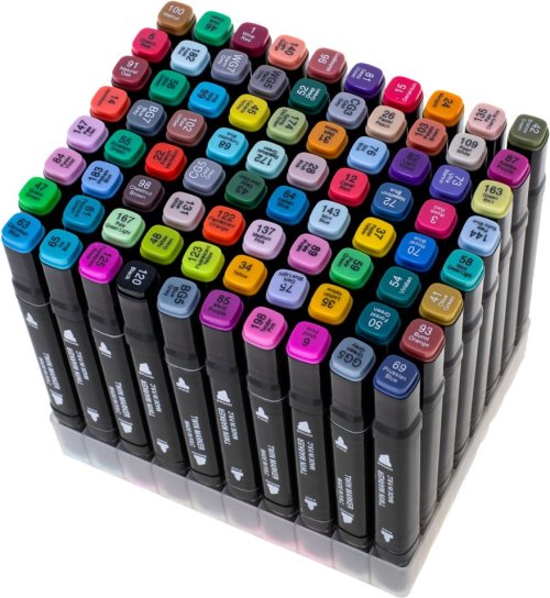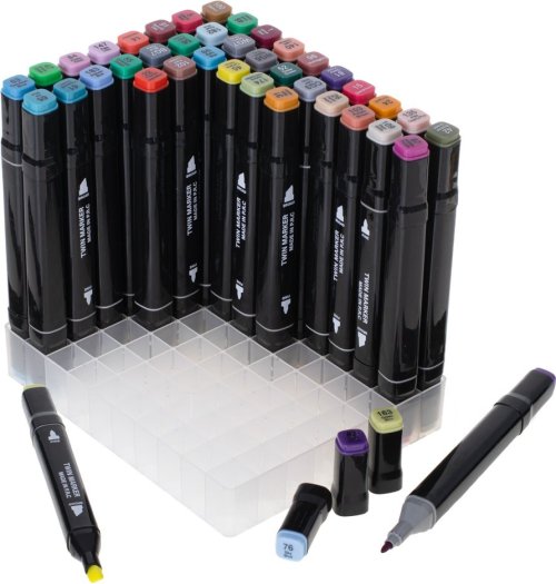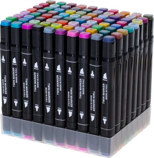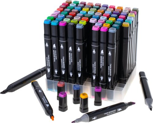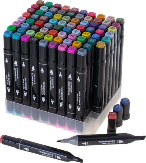 Súprava 80 fixiek v rôznych farbách a plastový stojan pre jednoduché uloženie. Vlastnosti: