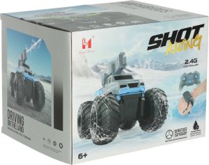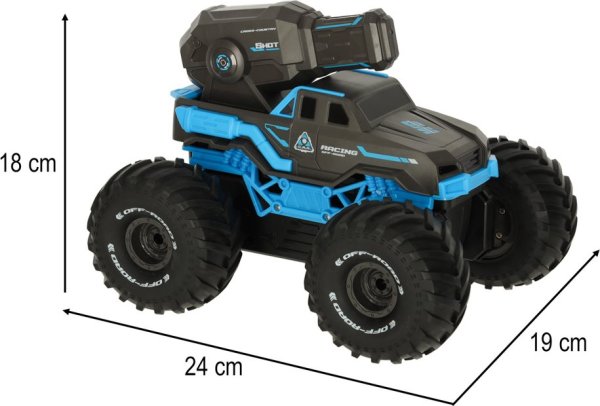 Diaľkovo ovládané auto s vodným delom je perfektná hračka pre nadšencov do RC modelov! Je vybavené vodným delom, ktoré dokáže čerpať vodu ako zo vstavanej nádrže, tak priamo z vonkajšej vody pri ponorení. Vodeodolný design umožňuje bezpečné hranie vo vode bez rizika poškodenia elektroniky. Auto má veľké gumené pneumatiky s priemerom 9 cm, ktoré nepoškriabu podlahu a poskytujú skvelú priľnavosť. Model je napájaný dobíjacou batériou s kapacitou 500 mAh (súčasťou balenia) a ovláda sa pomocou dvoch ovládačov - klasického a náramkového. Oba vyžadujú batérie (AA a AAA, nie sú súčasťou balenia). Hračka podporuje rozvoj koordinácie rúk a očí, obratnosti a jemnej motoriky. Vhodné pre deti od 6 rokov. Technické špecifikácie: