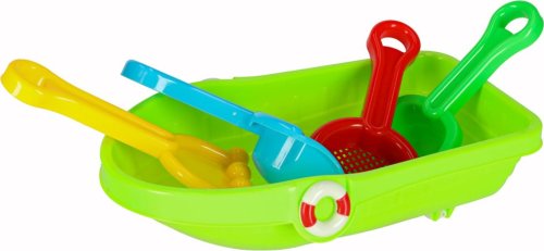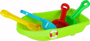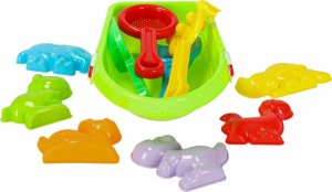 Súprava na piesok zabaví deti v záhradke, na pieskovisku aj na piesočnatej pláži. Obsahujú šesť formičiek v tvare zvieratiek, 2 lopatky, hrable, sito, loďku a vodnú pištoľ. Vďaka príslušenstvu je ľahké stavať pieskové stavby, rozvíjať jemnú motoriku a podnecovať fantáziu. Technické špecifikácie: