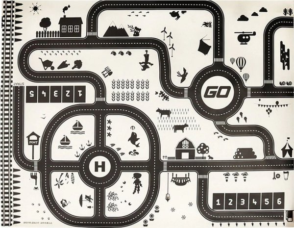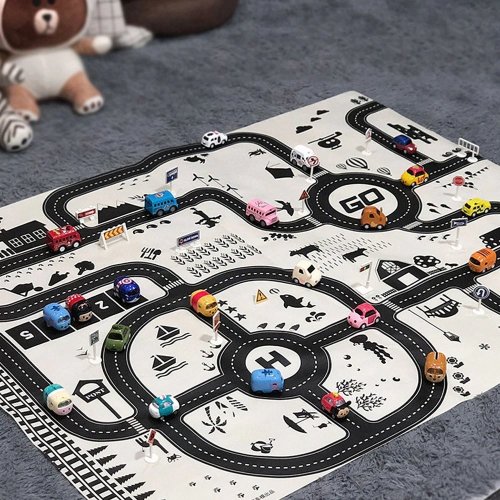Vodeodolná vzdelávacia podložka pre deti, ktoré snívajú o vlastnom meste s ulicami po ktorých by mohlo jazdiť so svojimi obľúbenými autíčkami.
