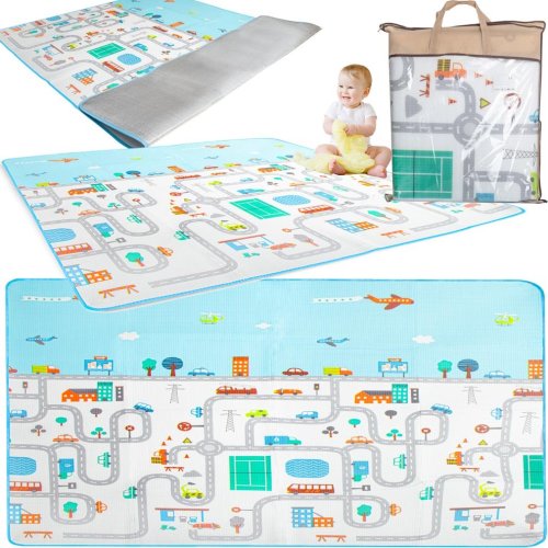 Farebná jednostranná potlač, grafika môže inšpirovať rodičov k rozprávaniu príbehov, textúrovaný protišmykový povrch, spodná vrstva je z tepelne izolačnej fólie, izoluje od chladu a tlmí pády, bezpečné hranie na podlahe - učenie a zábava v jednom, odolná voči znečisteniu, ľahko sa čistí vlhkosť handričkou, vhodná na použitie doma, na záhrade i na pláži, žiadne vekové obmedzenie na použitie, skvelý spôsob ako vymedziť hraciu zónu v izbe, ľahké zloženie do kompaktných rozmerov, balené v praktickej taške so zipsom.