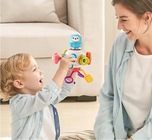 obsahuje osem panelov aktivít, ktoré stimulujú zmysly dieťaťa a rozvíjajú motorické zručnosti, vyrobená z vysoko kvalitných materiálov a navrhnutá s ohľadom na vývoj a bezpečnosť dieťaťa, pomáha rozvíjať motorické zručnosti dieťaťa tým, že chytá, ťahá, otáča a stláča rôzne prvky, jasné a živé farby kocky spolu s rôznymi tvarmi, textúrami a zvukmi poskytujú zmyslovú stimuláciu a podporujú rozvoj motorických zručností a koordinácie ruka-oko.