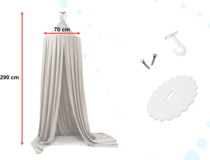 Závesný baldachýn KIK nielen krásne vyzerá, ale zároveň poskytuje deťom pokojný spánok. Tento elegantný a funkčný dekoratívny prvok zútulní každú detskú miestnosť. Balenie obsahuje všetky potrebné komponenty. pred vonkajšími podnetmi. výborne poslúži ako stan – ideálna skrýša pre plyšové hračky, autá, bábiky alebo miesto na odpočinok a čítanie.