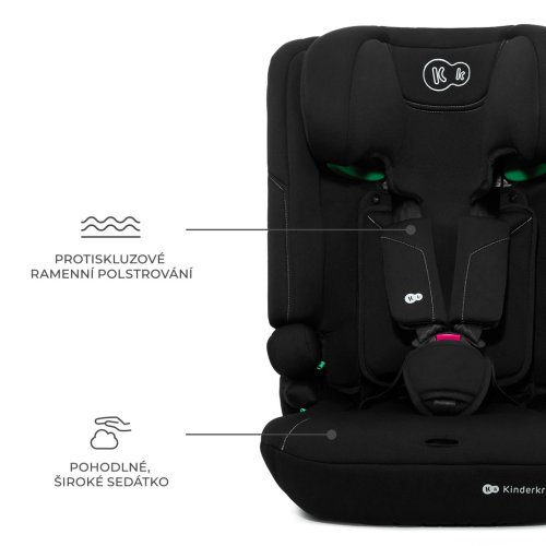 I-COMFY ponúka 10-stupňové nastavenie operadla, ktoré umožňuje prispôsobiť sklon operadla sedačky uhlu sedadla v aute, a široké, pohodlné sedadlo s 5-bodovými bezpečnostnými pásmi vybavenými mäkkými poduškami a protišmykovou vrstvou na ramenných popruhoch. Od výšky 140 cm je možné autosedačku používať aj ako podsedák (booster).