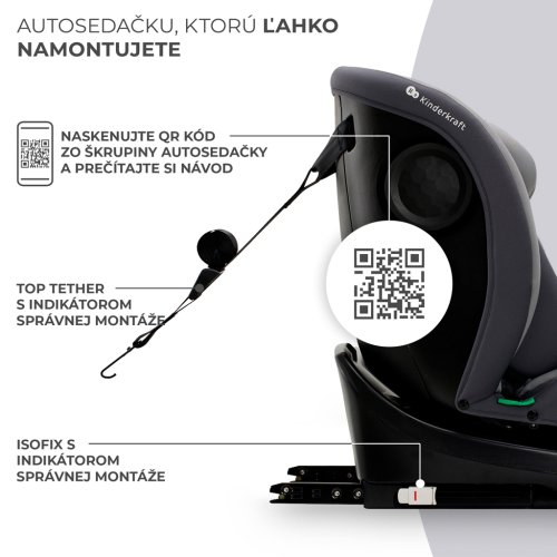 Jednoduchá inštalácia na ISOFIX Vďaka systému ISOFIX je možné autosedačku namontovať behom chvíľky. Okrem úchytov sú umiestnené indikátory, ktoré ukazujú, že je autosedačka správne nainštalovaná. prepravovaná s pripevnenými vnútornými pásmi autosedačky.