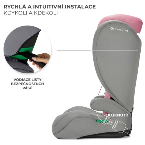 Univerzálna Montáž na 3-bodový bezpečnostný pás je rýchla a bezproblémová: autosedačku môžete namontovať do akéhokoľvek vozidla, dokonca aj do starších modelov bez systému ISOFIX. Autosedačka je navyše ľahká, takže ju možno ľahko prenášať z auta do auta, napr. keď idete na dovolenku alebo dieťa zostáva s rodinou dlhšiu dobu. Pás môžete ľahko pretiahnuť vodidlami na opierke hlavy a pod lakťovou opierkou, aby ste sa uistili, že ste dieťa pripútali správne.