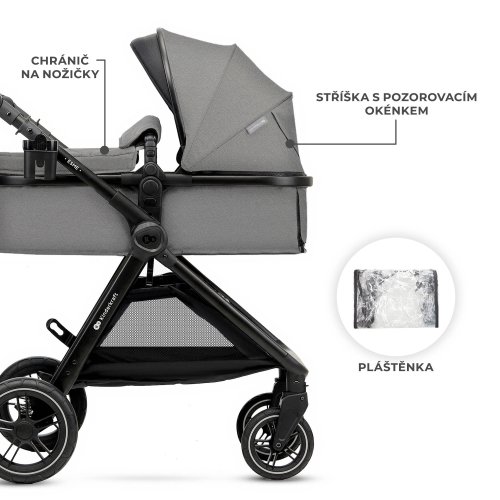Praktické riešenia Kočík 3 v 1 ESME má veľkú striešku s okienkom pre kontakt s dieťaťom, ktorá chráni pred vetrom aj slnkom. Pod sedadlom sa nachádza priestranný košík s nosnosťou až 3 kg – ideálny na nákupy alebo nevyhnutné doplnky. O bezpečnosť dieťaťa sa starajú nastaviteľné 5-bodové pásy s mäkkými poduškami a odnímateľné madlo, ktoré je možné otvoriť z oboch strán.