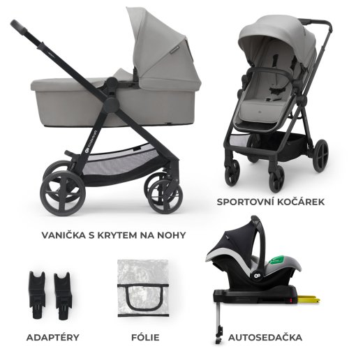 Sada obsahuje: Sedadlo 2 v 1 (vanička a sedadlo), rám, nánožník, pláštenka, autosedačka MINK PRO i-Size (40-75 cm) a adaptéry