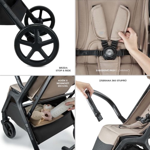 Kočík Kinderkraft LOOM je ľahký a obratný kočík, ideálny na každodenné použitie. Vďaka kompaktnému dizajnu a automatickému systému skladania sa ľahko ovláda a výborne sa hodí na cestovanie. Je navrhnutý pre deti do 22 kg, čo zaručuje pohodlie až do veku 4 rokov. Kočík LOOM vyniká svojou ovládateľnosťou - dá sa jednoducho riadiť jednou rukou a kolesá odolné proti prepichnutiu zvládnu rôzne terény bez námahy. Strieška chráni pred slnkom a vetrom, zatiaľ čo ventilačné panely zaisťujú správny prietok vzduchu, čím zaručujú pohodlie počas celého roka. Kočík ponúka nastaviteľné operadlo, dve úrovne nastavenia opierky na nohy a otočné bezpečnostné madlo s možnosťou odpojenia, čo uľahčuje vkladanie a vyberanie dieťaťa z kočíka. Priestranný košík s kapacitou 5 kg pod kočíkom umožňuje pohodlné uloženie nákupov a ďalších potrebných vecí.