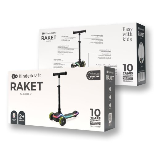 Zábava a bezpečnosť počas celého dňa. RAKET je detská kolobežka s intuitívnym ovládaním pomocou náklonu tela, ktorá podporuje rozvoj rovnováhy a koordinácie. Vďaka svietiacej LED plošine a RGB kolieskam je jazda nielen vzrušujúca, ale aj bezpečnejšia po zotmení. Kolobežka je ideálna pre prvé jazdecké skúsenosti – s jednoduchým skladaním, nastaviteľnou výškou riadidiel a hladkou jazdou na každom povrchu.