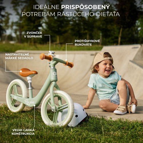 Rýchle, ľahké a dobre ovládateľné, práve také je detské odrážadlo FLY PLUS. Pastelové farby a ľahký rám potešia ako malých priaznivcov výletov do mesta, tak aj ich rodičov. FLY PLUS je odrážadlo prepracované v každom detaile, ktoré sa vyznačuje retro dizajnom a ľahkými kolesami z neprepichnuteľnej peny. Ergonomické sedadlo s mäkkou výplňou umožní dieťaťu pohodlnú aj tú najbláznivejšiu jazdu po nerovnostiach! Sedadlo má veľký rozsah nastavenia, jeho výšku môžete prispôsobiť ako pre malé dvojročné, tak aj pre vyššie staršie dieťa. Trojkolka FLY PLUS má obmedzený uhol otáčania riadidiel, ktorý dieťa ochráni počas hrania pred nekontrolovaným otáčaním a pádom.