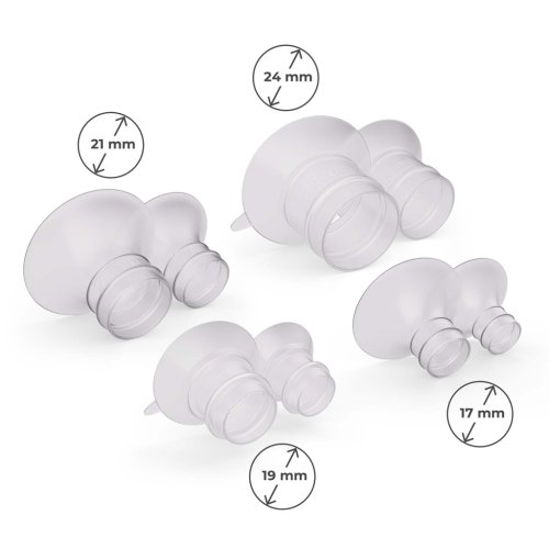 Súčasťou dodávky je sada lievikov (27 mm, 24 mm, 21 mm, 19 mm, 17 mm) uľahčuje prispôsobenie veľkosti vašej anatómii, čo sa premieta do skutočného pohodlia pri odsávaní. Fľaštička s objemom 180 ml vám umožní absolvovať odsávanie bez častého vyprázdňovania. Jednoduchá montáž a znížený počet dielov zefektívňujú umývanie a sterilizáciu, a to všetko ďalej podporí ďalšia sada 6 membrán a 6 ventilov pre dlhšie používanie, a to až na 12 mesiacov. Sada GENTLEFLOW obsahuje nielen komponenty, ktoré zlepšujú prispôsobenie a hygienu, ale aj puzdro na uloženie a prepravu, napájací kábel USB-C a šnúrku na krk - mobilné odsávanie tak nie je len nápad, ale praktická možnosť, ktorú ocenia dojčiace matky.