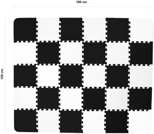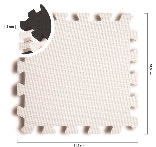 Praktická a pohodlná penová podložka z 30 puzzlí, ktoré je možné spájať ľubovoľným spôsobom. Je určená na zábavu pre vaše dieťa. Môže na nej ležať alebo na nej robiť prvé kroky. Neutrálne, kontrastné farby puzzlí sú dokonalým dekoratívnym prvkom miestnosti. Sú vyrobené z peny, sú bezpečné a neobsahujú škodlivé substancie čo je potvrdené testami z nezávislého laboratória INTERTEK. Navyše sa ľahko udržujú čisté. V zostave je tiež taška na prechovávanie puzzlí.