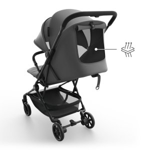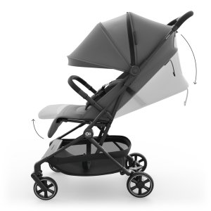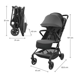 Mechanizmus skladania jednou rukou umožňuje rýchle zloženie kočíka aj v dynamických situáciách. Po zložení kočík samostatne stojí a jeho rozmery (51 × 43 × 21 cm) zodpovedajú štandardom príručnej batožiny, čo výrazne zvyšuje komfort cestovania.