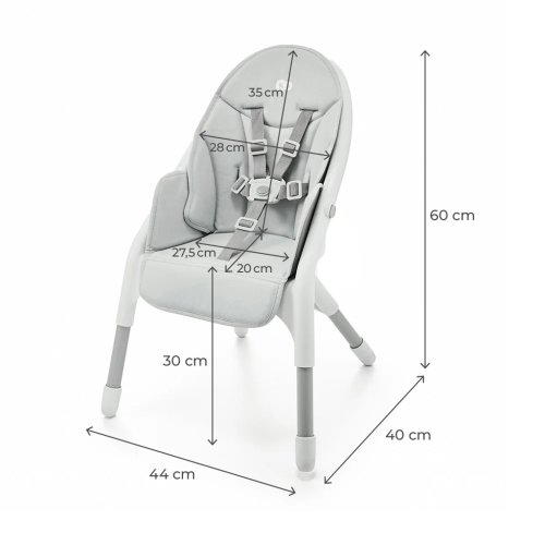 Jednoduchá montáž Dinnly sa vyznačuje intuitívnou montážou bez použitia náradia. Za pár chvíľ zložíte vysokú stoličku na kŕmenie a potom ju jednoducho prerobíte na nízke sedadlo pre staršie dieťa.