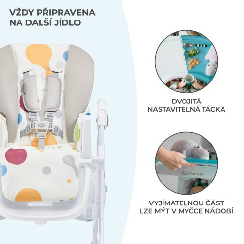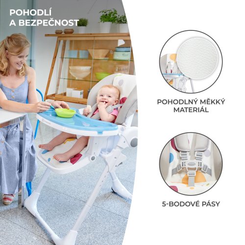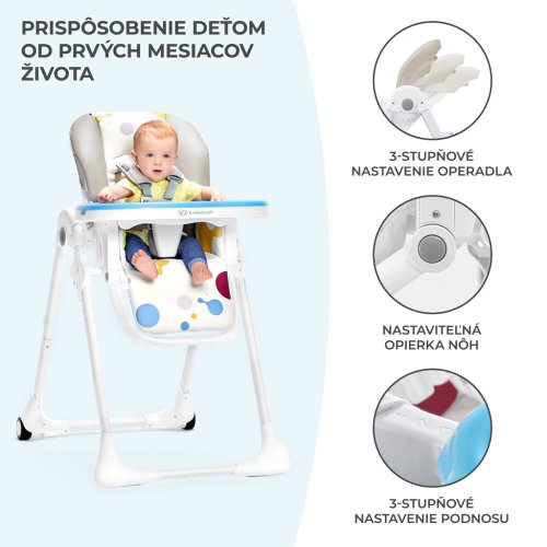 Jedálenská stolička vhodná pre deti od 6 mesiacov do 3 rokov.